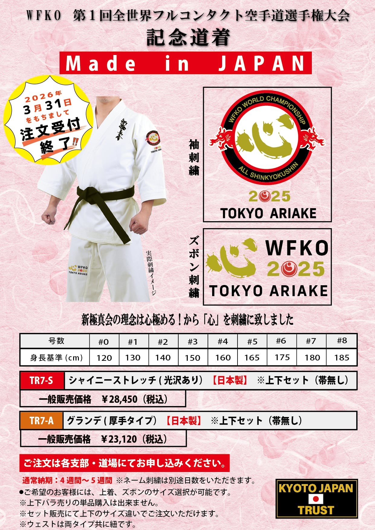 大会開催を記念して販売しておりました「大会記念道着」が、2026年3月31日(火)をもちまして、注文受付終了となります。