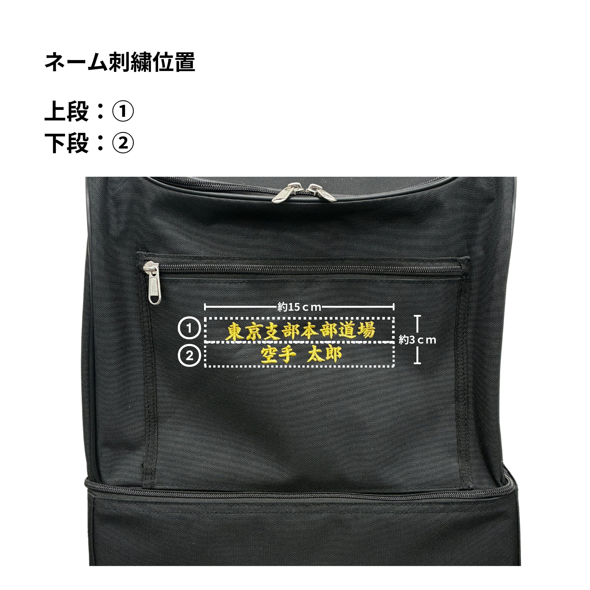 リュック正面に、支部・道場名や氏名を入れることができます。
