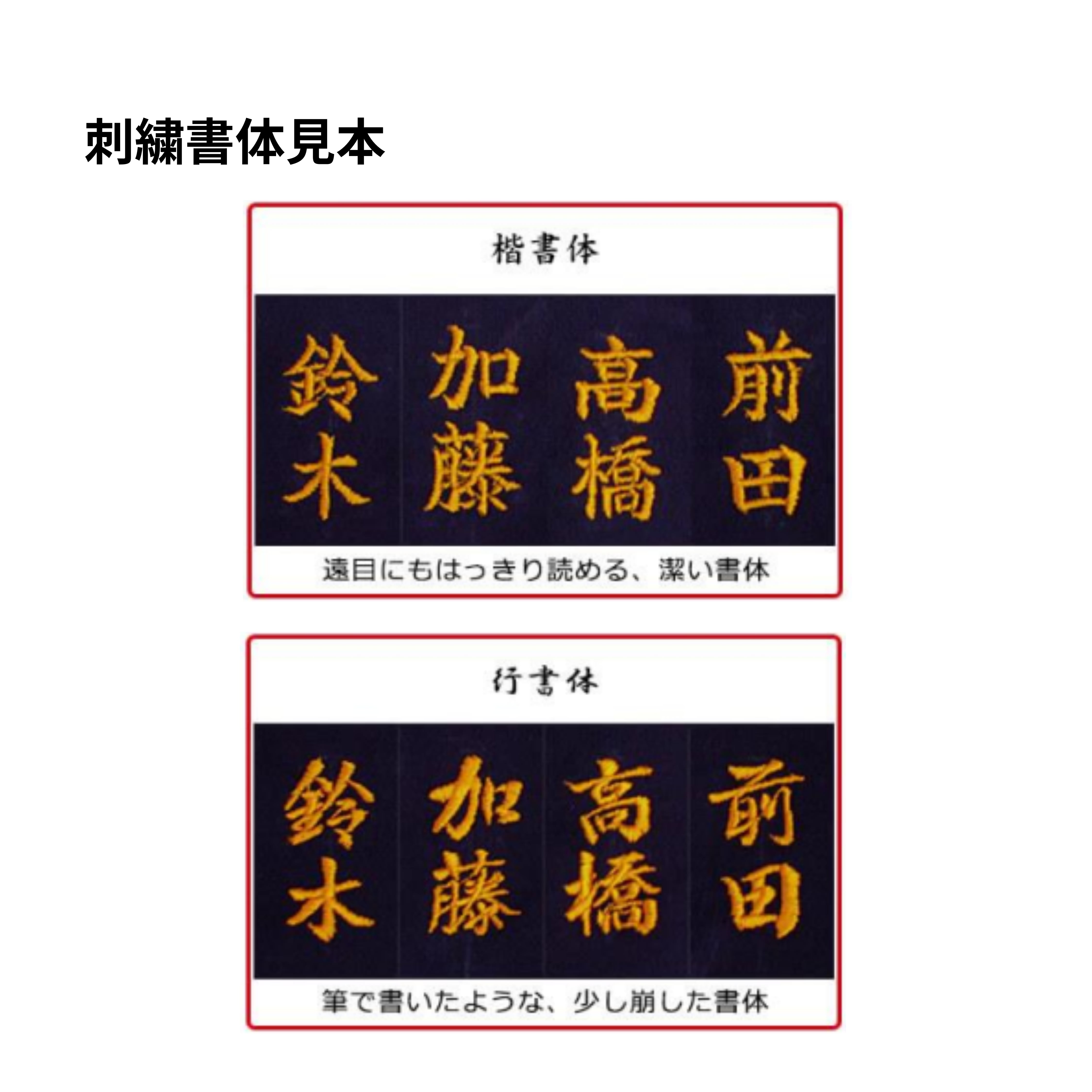 ※アルファベットでの刺繍に関しては、ゴシック体になりますのでご了承ください。